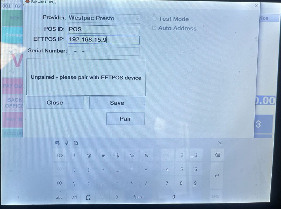 Please then enter the IP address shown on the EFTPOS into the "EFTPOS IP" field